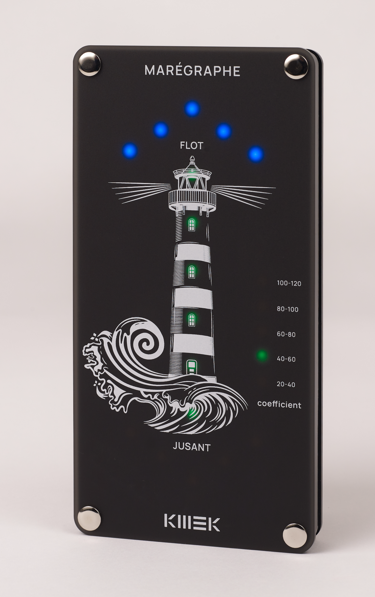 Des LED dédiées au coefficient permet de visualiser rapidement l’intensité de la marée.